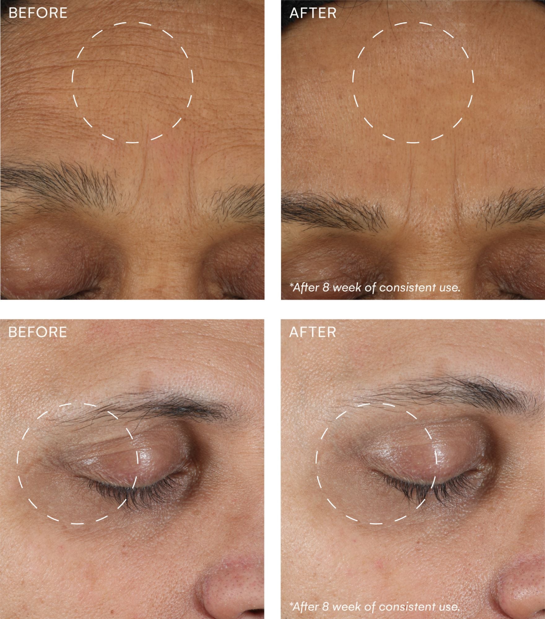 The Trifecta system visibly reduces signs of aging in as little as 4 weeks when used consistently. We adhere to the highest product standards and validate efficacy through rigorous third-party testing. After 8 weeks of usage, the clinical study proved: